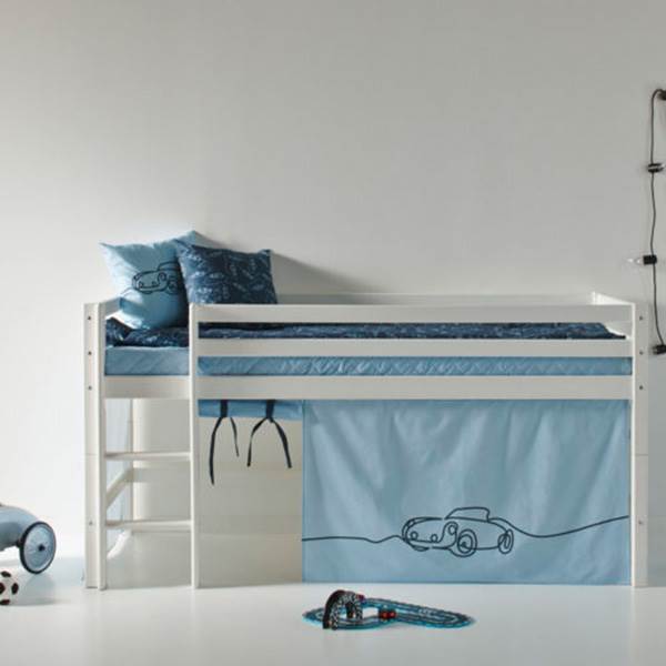 Forhæng til halvhøj- /etageseng – Cars De håndsyede forhæng skaber en magisk og eventyrlig verden lige midt i børneværelset. Når forhænget monteres på sengen, er det ikke længere en seng, men i stedet et rumskib, et eventyrslot, en tidsmaskine eller noget